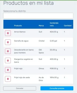Con la lista completa, el siguiente paso es definir el departamento y los distritos donde se planea realizar la compra.
